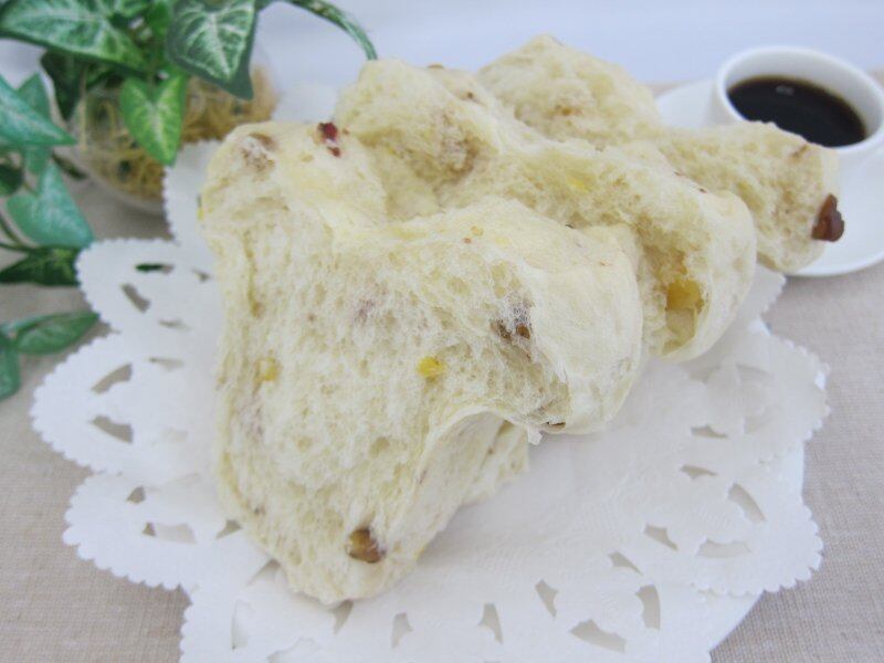 小麦粉(国内製造)、牛乳、マーガリン、砂糖、卵、くるみ、さつま芋甘露煮、パン酵母、食塩/香料、乳化剤、ビタミンC、着色料(クチナシ、カロチン)、(一部に小麦・卵・乳成分・大豆・くるみを含む)